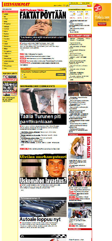 | Viikkosanomat 2009/09/29 - Vanhanen raivona Ylelle: "Todisteet pöytään!" - Matti Vanhanen Ylelle: FAKTAT PÖYTÄÄN. - Viime yönä: Ylen väite: Rakennusliike maksoi Vanhasen talon kuluja. - Arkisto 2008. Pääministeri Matti Vanhanen sekoilee puheissaan. - Arkisto 2009. "Vaaliraha ja kuittisotku Suomessa." - Viikko sitten! Mitta täyttyy. Pääkirjoitus. - Arkisto 2004. Populärmusik från VITTULA. Om musikplinkande och andra mer eller mindre manliga aktiviteteter. "...det finns scener som är så roliga i den här filmen att man nästan ramlar av stolen och ner pä golvet." - Arkisto 2008. "... why it was not reformed sooner." Financial Times. -Viikkosanomat tiistai 29.09.2009 - etusivu - kuva - kuvat - pertti manninen - nettisanomat - 12.fi - Lakisanomat - http://www.viikkosanomat.fi - N:o 34. |