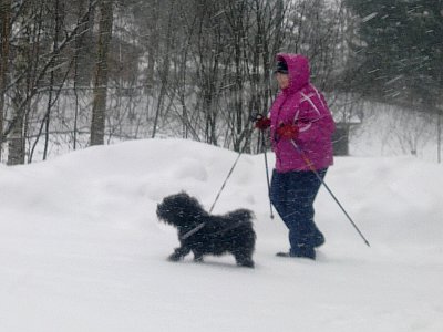 "Kalevalan päivänä". Kuusi kuvaa lumesta lämpöön: Lippu liehuu, pojat menossa mäkeen - Vauhdin hurmaa - Kuntolenkki - Kelpaa potkutella - Café lämmittää - Pienet panokset.